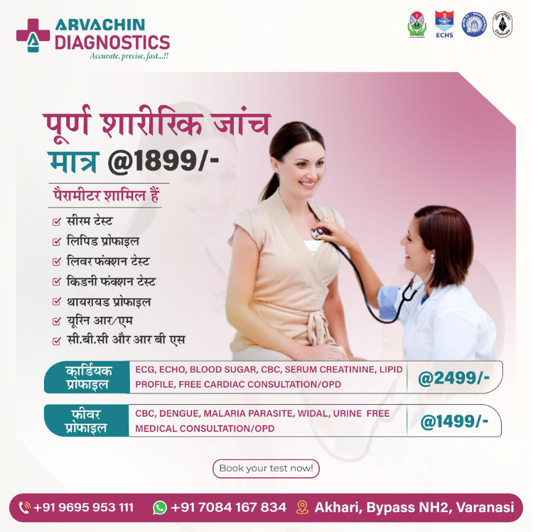 Arvachin Diagnostics is known for advanced equipment, accurate results, and home sample collection. As the best diagnostic centre in Varanasi, we ensure every test is handled with care and precision.
